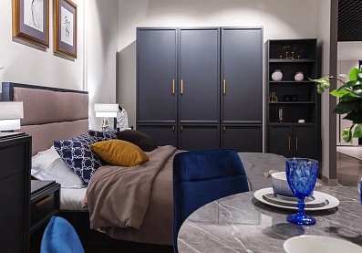 Вместительная модель с покрытием цвета «блан-шене» станет настоящим подарком для тех, кто давно мечтает о своей гардеробной. Платяной шкаф подойдет для минималистичной спальни или гостиной в современном оформлении. Изящный скошенный карниз в оттенке «дуб бунратти», лаконичные филенки и тонкие ручки-скобы, стилизованные под «античное железо черное», делают внешний облик мебели аккуратным и завершенным. Опорная часть замаскирована цоколем, выполненным в основном тоне.