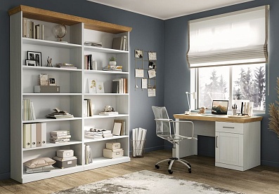 Мебель выполнена в цветах «блан шене» и «дуб бунратти»;