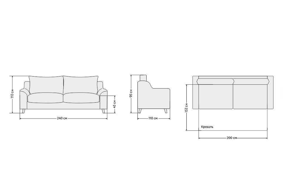 – описание: размер спального места 152 х 200 см, стиль современный, материал обивки рогожка, размер 95x240x110 см.