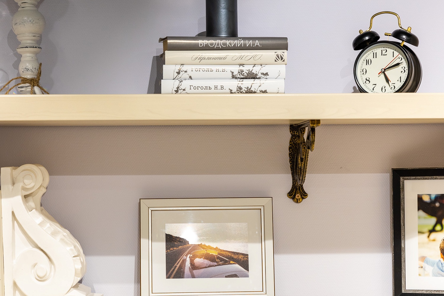 Сдержанная роскошь проявляется в деталях: элегантные латунные ручки, фрезерованные филенки, изящные витые менсолодержатели. Ручное патинирование придает фасадам налет старины, качественное лаковое покрытие устойчиво к выцветанию, не желтеет со временем. Надежная, продуманная фурнитура — петли с доводчиками, накладные демпферы, скрытые направляющие — превращает эксплуатацию гарнитура в истинное удовольствие.
