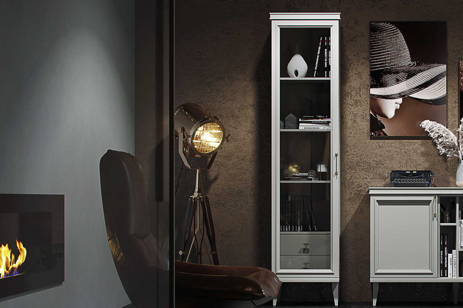 – описание: стиль английский, неоклассика, назначение для книг, для посуды, многоцелевой, цвет ярко-серый, размер 218.5x52.7x42.5 см.