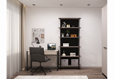 - Шкаф с 2 распашными фасадами, 4 полками ЛДСП и 1 выдвижным ящиком;