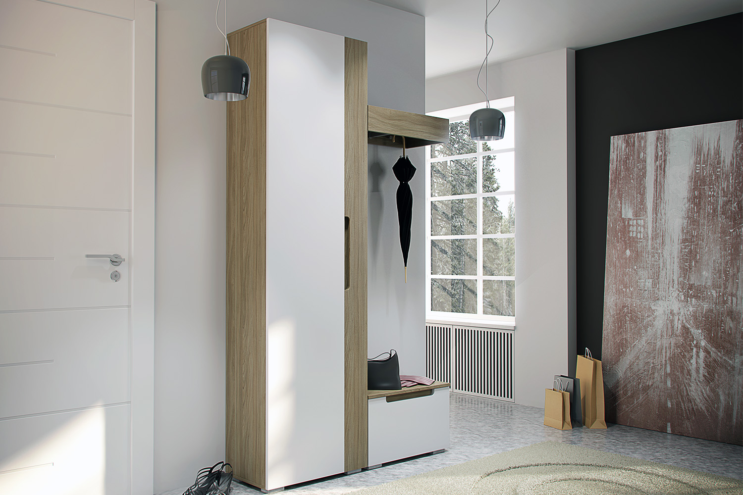 – описание: назначение для одежды, цвет швейцарский вяз, белый, стиль современный, минимализм, размер 229.2x60.1x34.9 см.