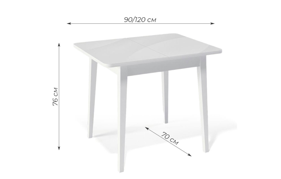 Размер стола компактный и в то же время достаточно вместительный для ежедневного использования 4 человек, по каждой стороне достаточно места чтобы поставить 4 широких стула вокруг стола. Механизм раздвижения со стеклянной вставкой позволяет комфортно посадить еще 2 гостей. Компактный и очень функциональный стол, идеален для использования как на небольшой кухне, так и в качестве уютной обеденной зоны в гостиной.