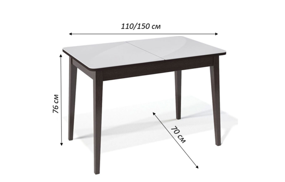 Размер стола компактный и в то же время достаточно вместительный для ежедневного использования 4 человек, по каждой стороне достаточно места чтобы поставить 4 широких стула вокруг стола. Механизм раздвижения со стеклянной вставкой позволяет комфортно посадить еще 2 гостей. Компактный и очень функциональный стол, идеален для использования как на небольшой кухне, так и в качестве уютной обеденной зоны в гостиной.